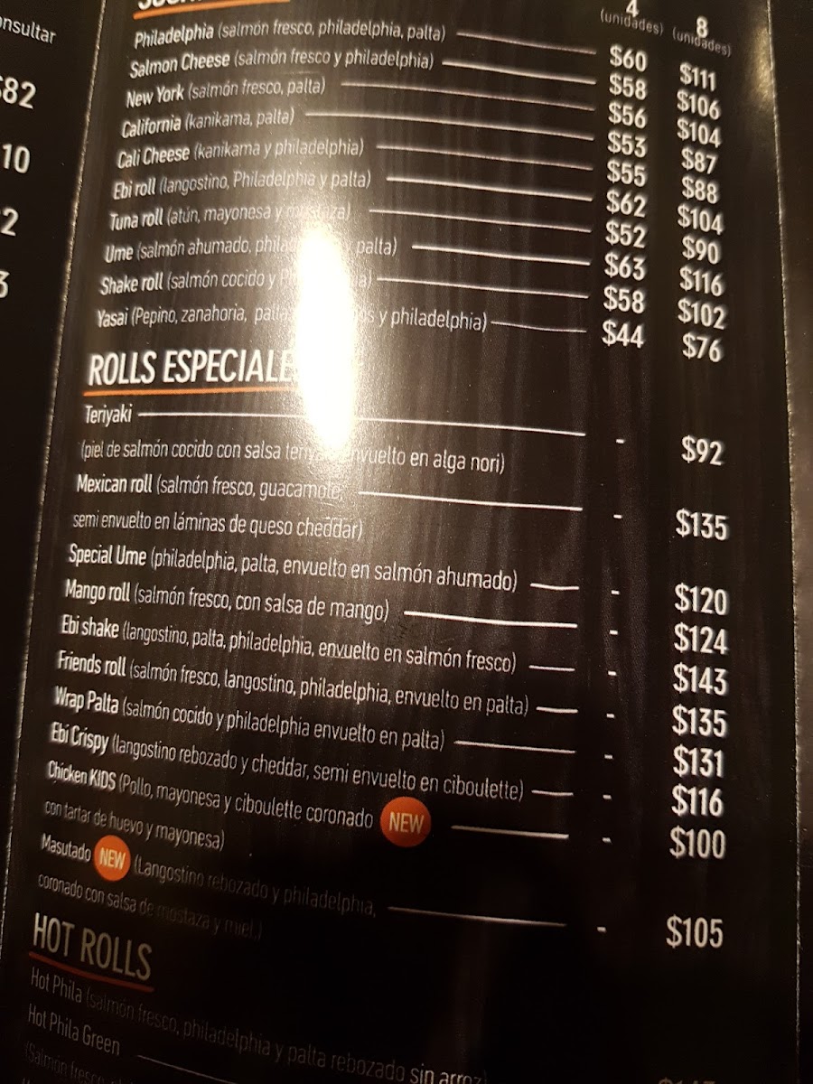 8 phila, 4 meximca, 4 new york, 4 shake , 4 special ume, 4 nigiris, 4 nigiri thai, 4 geishas, 4 wine, 4 sc, 4 tamago